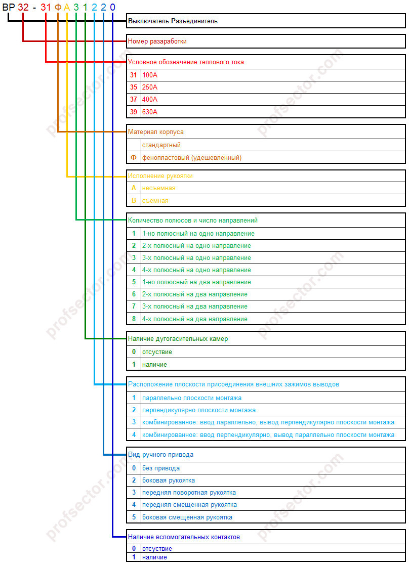 Расшифровка обозначения выключателя-разъединителя ВР-32