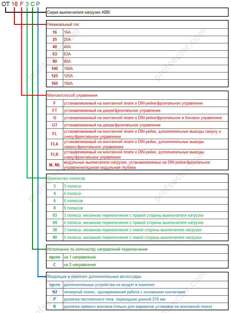 Расшифровка обозначения выключателя-разъединителя OT16...160