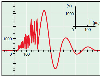 После скачков напряжения с очень крутым фронтом возникают затухающие колебания с пиковым значением 3500 В.