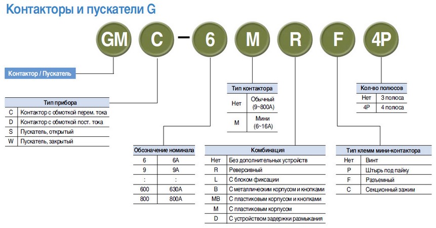 Расшифровка обозначения контакторов производства LS Industrial Systems
