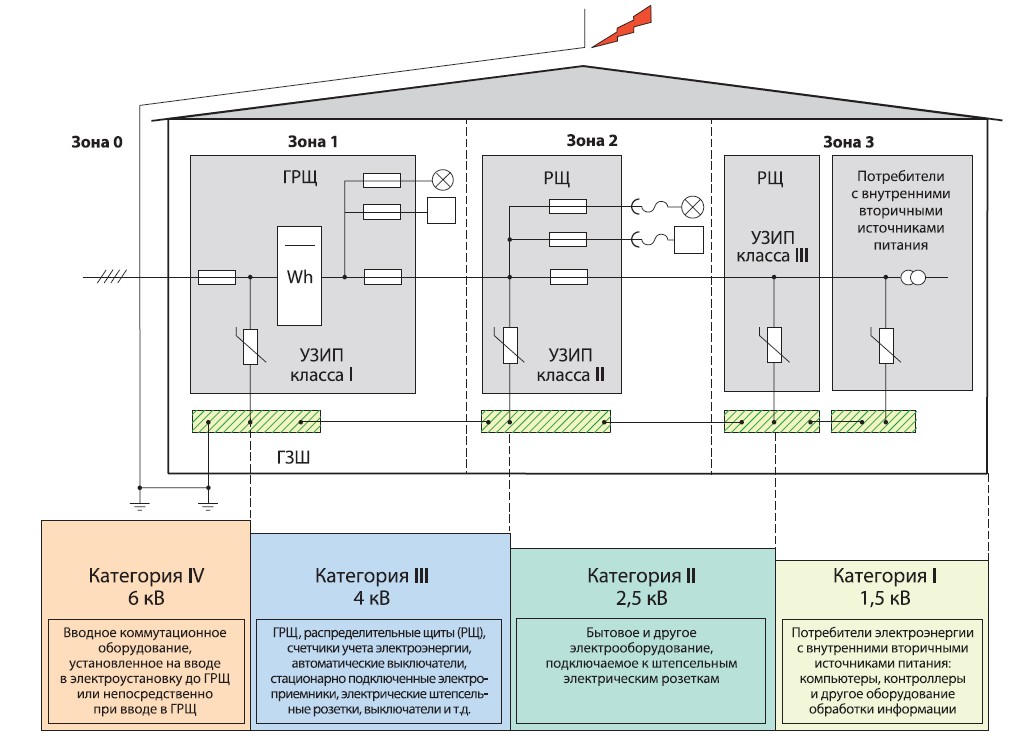 УЗИП второго и третьего классов рекомендуют устанавливать в местах, в которые исключена возможность прямого попадания молнии (групповые и квартирные этажные щитки, розетки и т.п.).