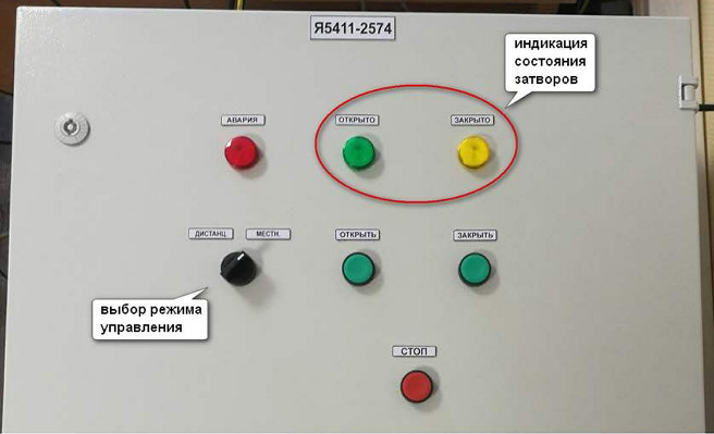 - Кнопка зеленого цвета «Закрыть» - для закрытия затвора при местном управлении