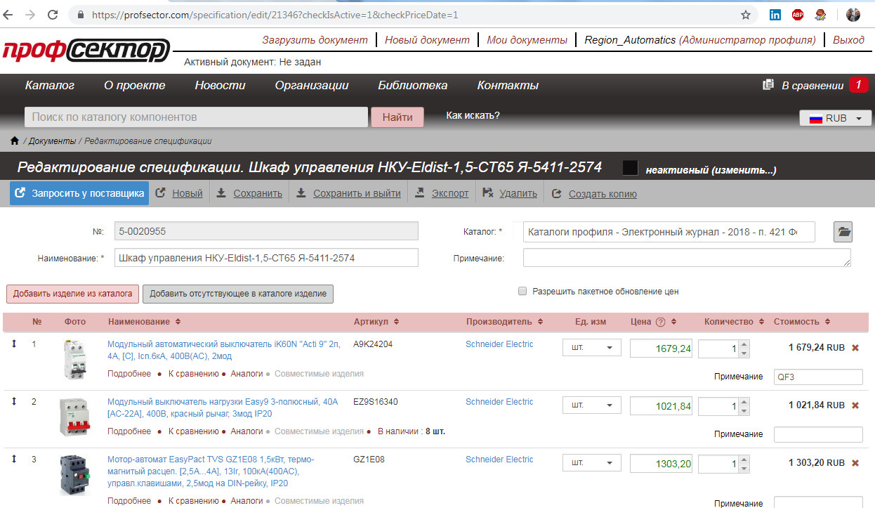 Определившись с основными компонентами шкафа составим спецификацию для заказа в производство и определения стоимости НКУ. Стоимость зависит от выбранного бренда комплектующих и составляет примерно от 70 до 100 тысяч рублей. (пример спецификации Приложение 2)