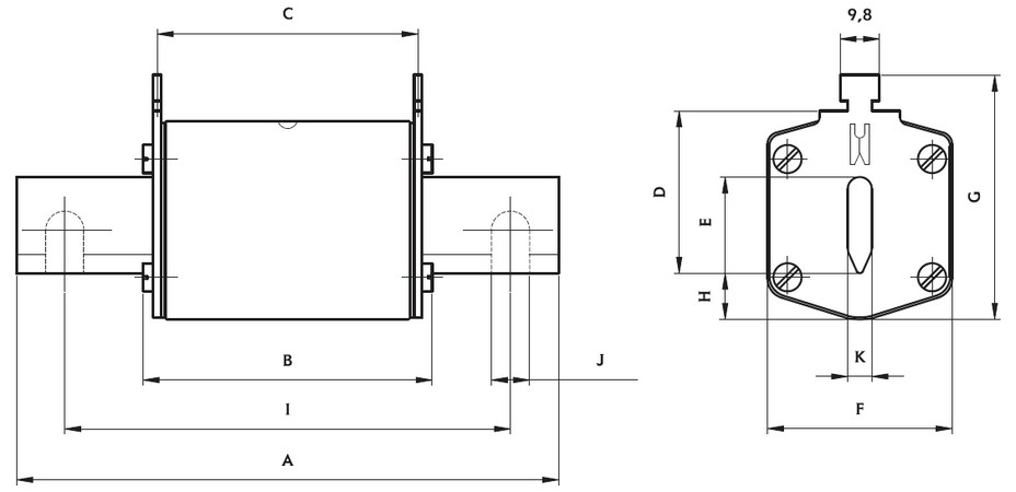 | Обозначение | Габариты вставок с металлическими крышками | Габариты вставок с изолированными крышками |