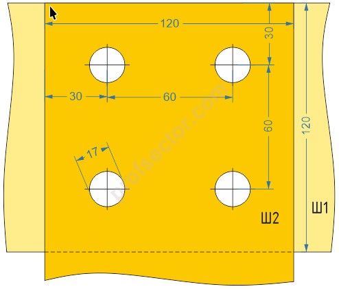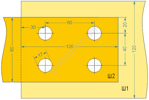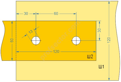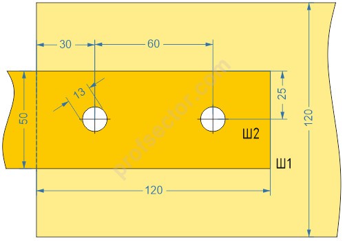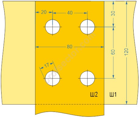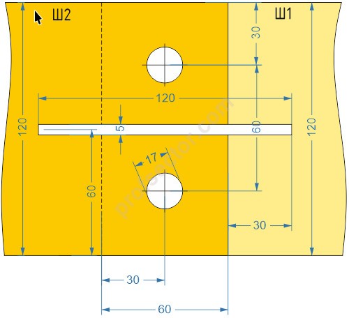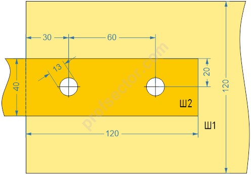 ▼ 4. Разборное соединение шин шириной 120 мм (Ш1) и 60 мм (Ш2). (вверх)