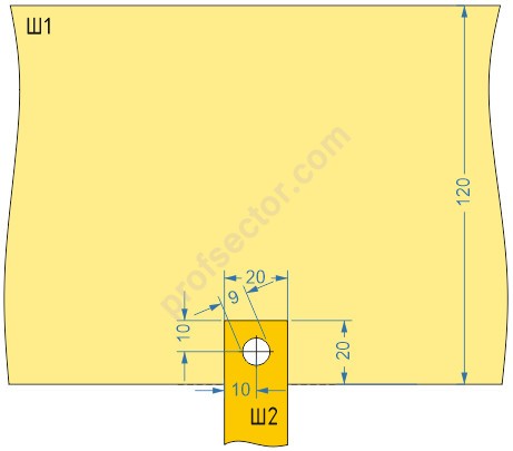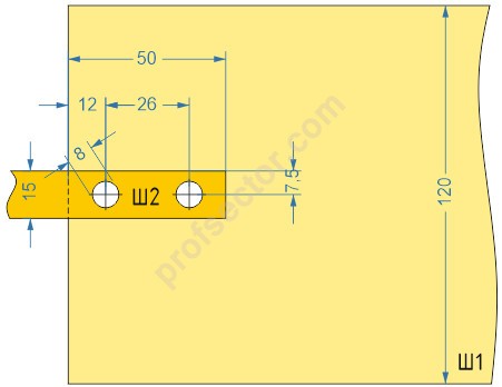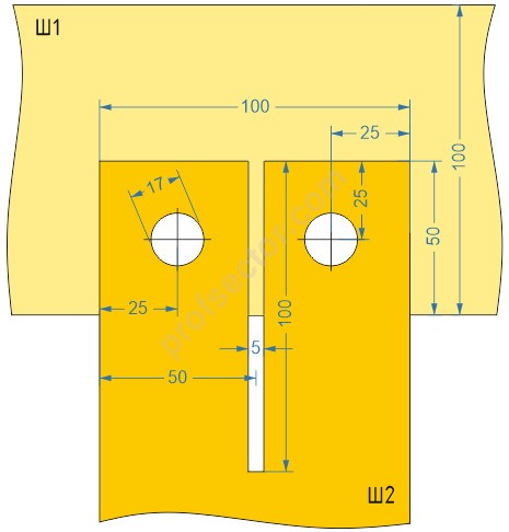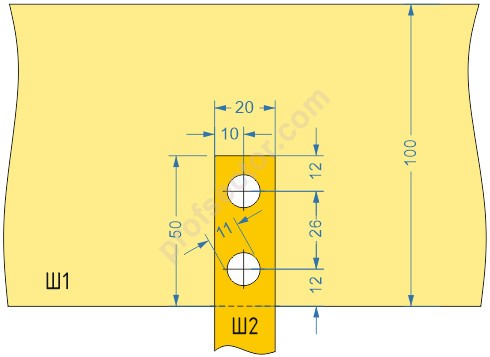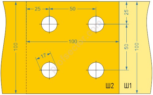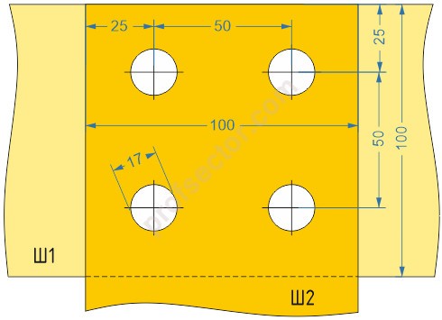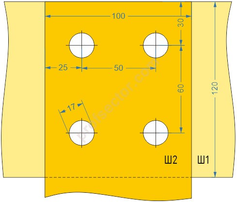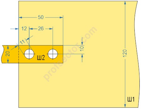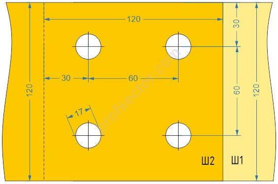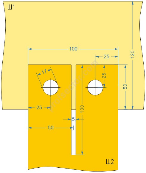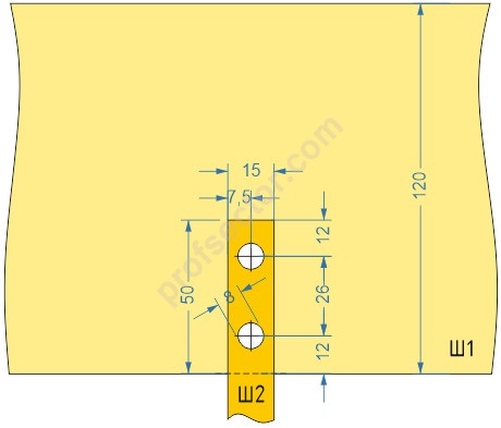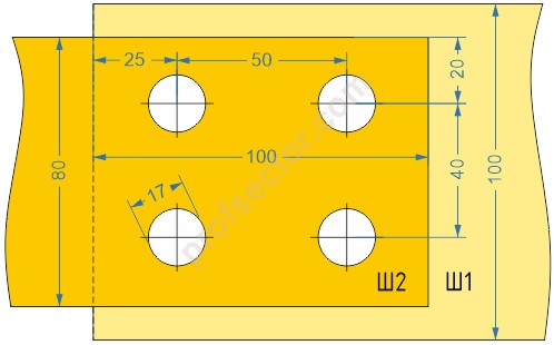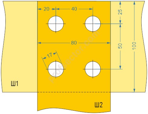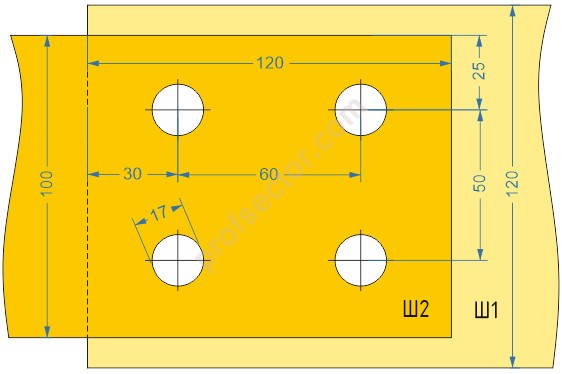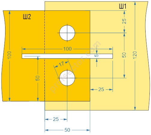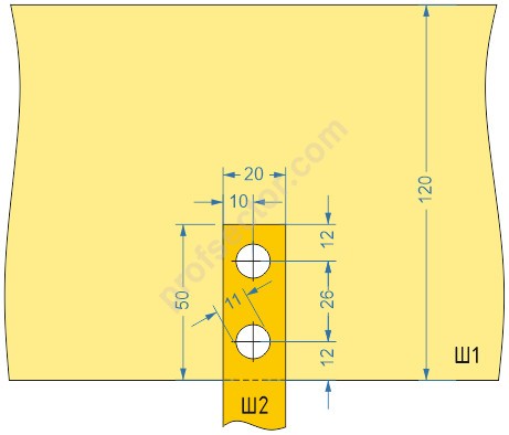 ▼ 2. Разборное соединение шин шириной 120 мм (Ш1) и 100 мм (Ш2). (вверх)