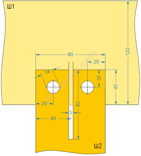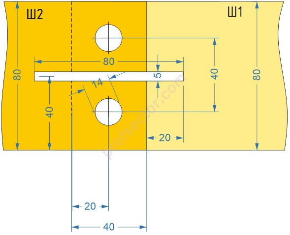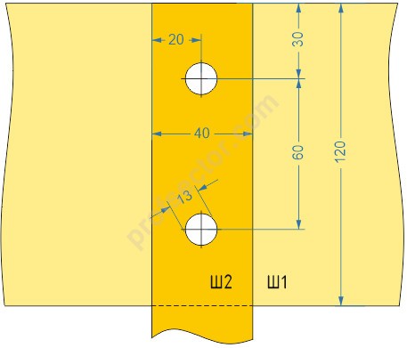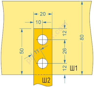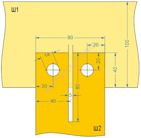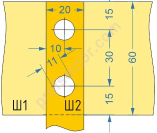 ▼ 29. Разборное соединение шин шириной 60 мм (Ш1) и 20 мм (Ш2). (вверх)