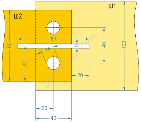 ▼ 21. Разборное соединение шин шириной 80 мм (Ш1) и 40 мм (Ш2). (вверх)