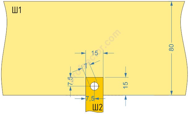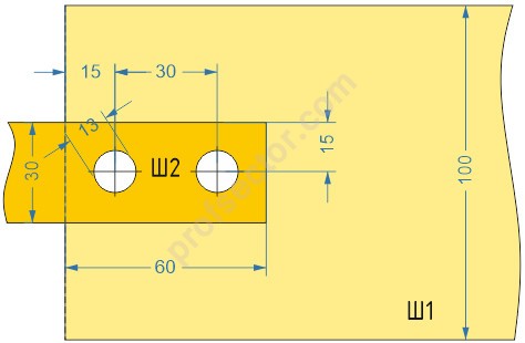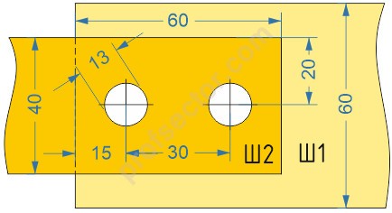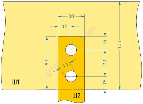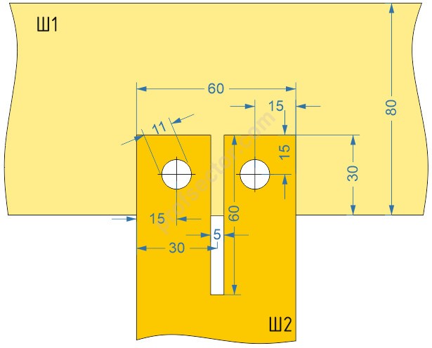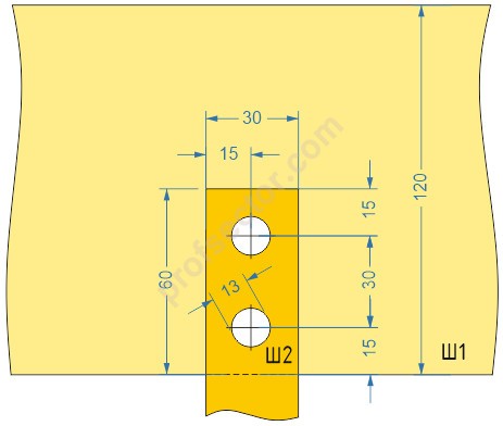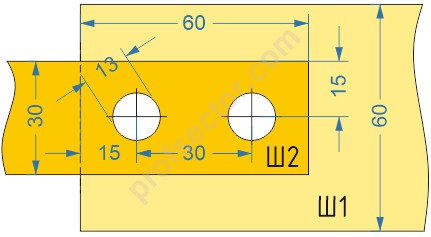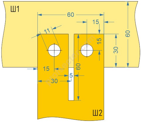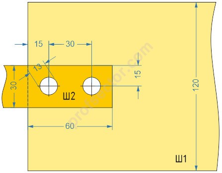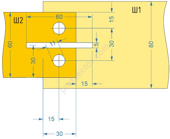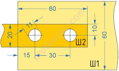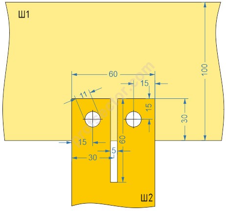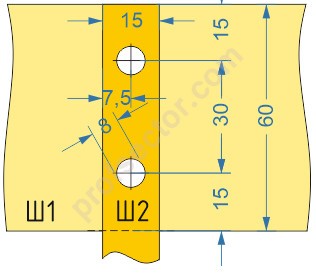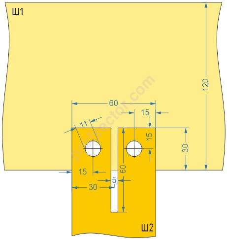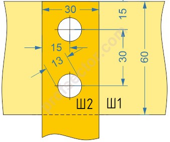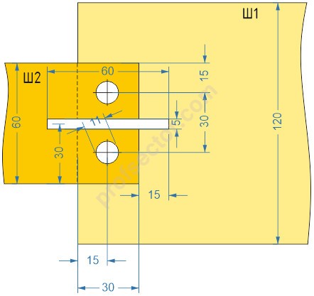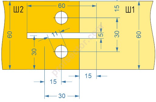 ▼ 30. Разборное соединение шин шириной 60 мм (Ш1) и 15 мм (Ш2). (вверх)