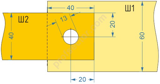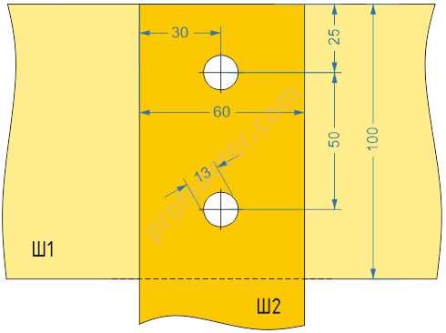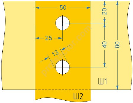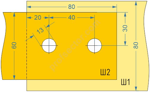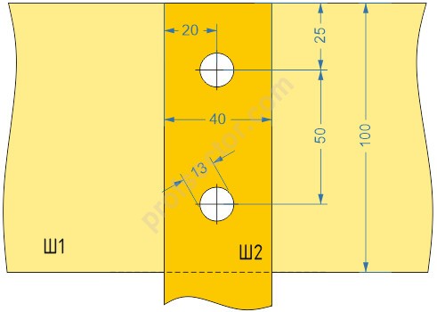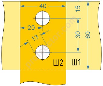 ▼ 27. Разборное соединение шин шириной 60 мм (Ш1) и 40 мм (Ш2). (вверх)