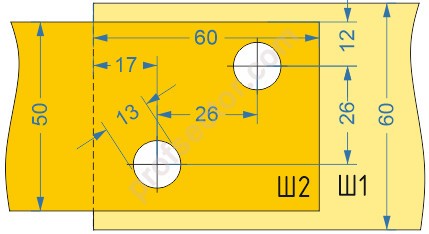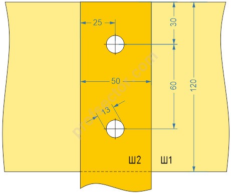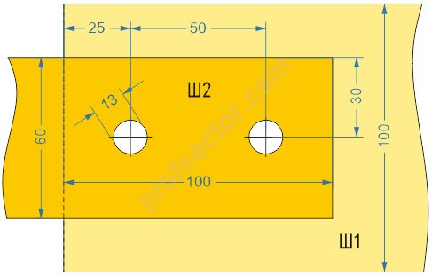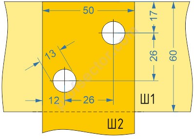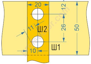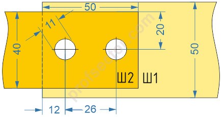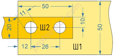▼ 26. Разборное соединение шин шириной 60 мм (Ш1) и 50 мм (Ш2). (вверх)