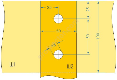 ▼ 33. Разборное соединение шин шириной 50 мм (Ш1) и 30 мм (Ш2). (вверх)