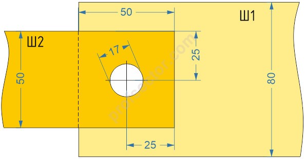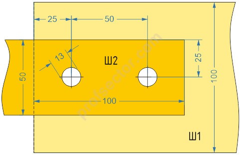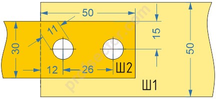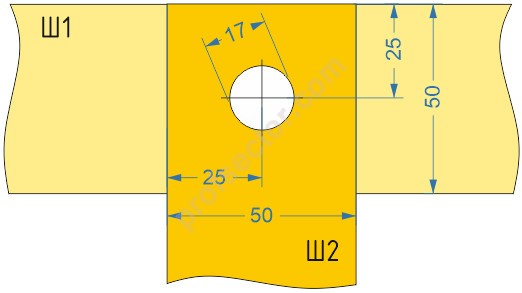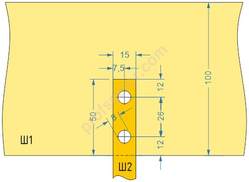 ▼ 35. Разборное соединение шин шириной 50 мм (Ш1) и 15 мм (Ш2). (вверх)