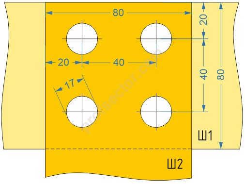 ▼ 23. Разборное соединение шин шириной 80 мм (Ш1) и 20 мм (Ш2). (вверх)