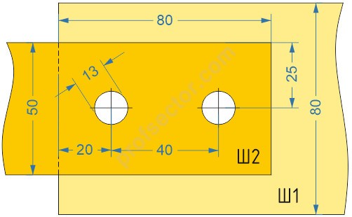 ▼ 20. Разборное соединение шин шириной 80 мм (Ш1) и 50 мм (Ш2). (вверх)