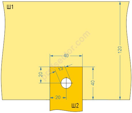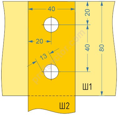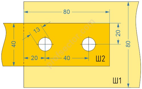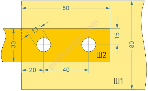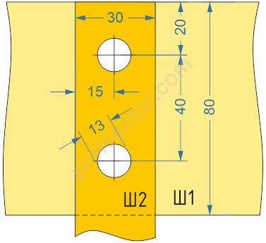 ▼ 41. Разборное соединение шин шириной 30 мм (Ш1) и 20 мм (Ш2). (вверх)