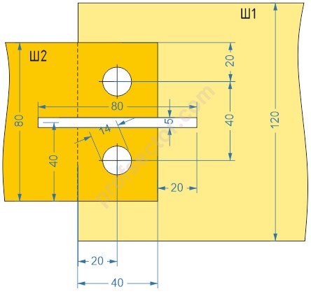 ▼ 3. Разборное соединение шин шириной 120 мм (Ш1) и 80 мм (Ш2). (вверх)