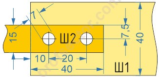 ▼ 39. Разборное соединение шин шириной 40 мм (Ш1) и 15 мм (Ш2). (вверх)