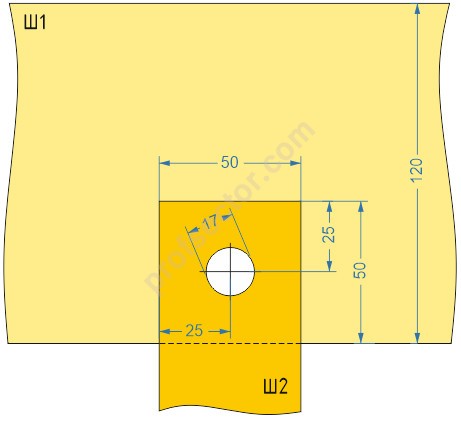 ▼ 5. Разборное соединение шин шириной 120 мм (Ш1) и 50 мм (Ш2). (вверх)