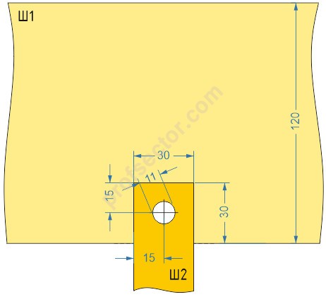 ▼ 42. Разборное соединение шин шириной 30 мм (Ш1) и 15 мм (Ш2). (вверх)