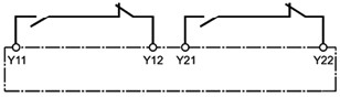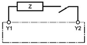 Мостик между двумя выводами рассматривается как постоянно замкнутый контакт, а соответствующие выводы должны быть маркированы Y1 и Y2. |