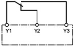 В случае трех выводов, предназначенных для подсоединения нескольких контактов, которые срабатывают одновременно (например, образуют переключающий контакт), они должны маркироваться Y1, Y2 и Y3, при этом Y1 - общий. |