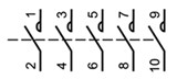 В аппаратах с защитой от перегрузок выводы вспомогательного контакта имеют ту же маркировку, что и контакт специального назначения, но с порядковым номером 9. |