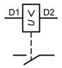 Два контактных вывода катушки, предназначенной только для применения в качестве расцепителя минимального напряжения, должны иметь маркировку D1 и D2 Для аппарата с двумя независимыми расцепителями (например, с разными номинальными параметрами) выводы второго расцепителя обычно имеют маркировку D3 и D4. |