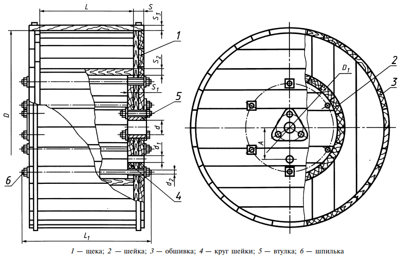 | Номер барабана | Ø щеки (высота барабана) D | Ø щеки с обшивкой (высота барабана) | Длина шпильки L1 (ширина барабана) | Вес с обшивкой, кг | Ø шейки D1 | Диаметр шеечного круга | Длина шейки Δ | Толщина | Диаметр отверстия | |||